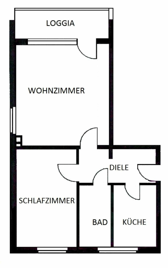 Die Wohnung hat einen Wohnraum mit Balkon, einen Schlafraum, einen Küchenraum und ein Bad. Zur Wohnung gehört ein Kellerraum.