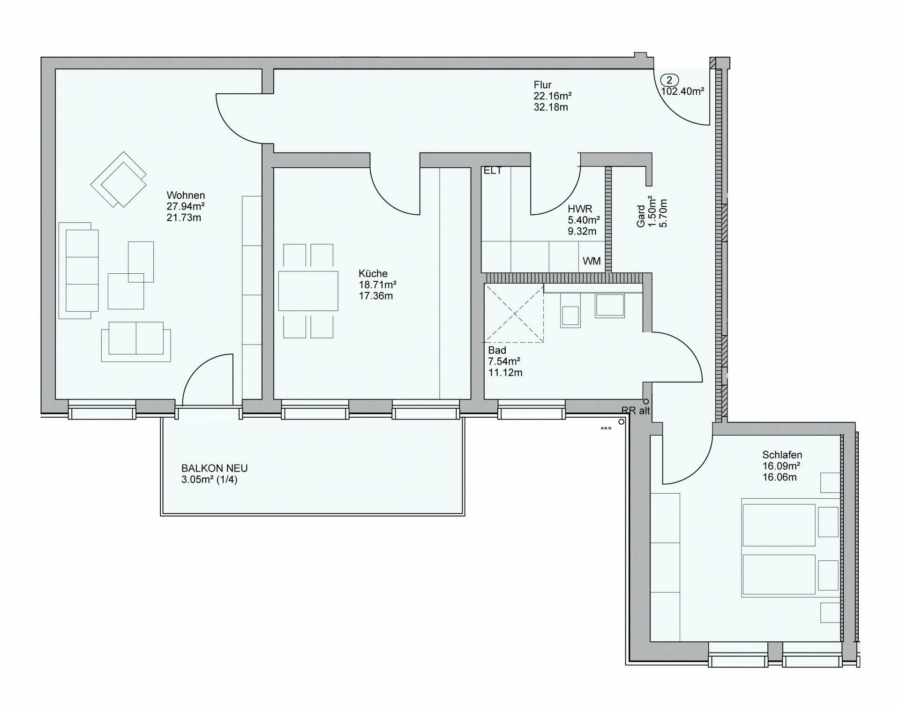 Das Objekt verfügt über einen Aufzug, und die Wohnungen sind barrierearm. Die Wohnung ist mit Echtholzparkett ausgestattet sowie Raufasertapeten. Modernes Bad mit Tageslicht. Im HWR ist Platz für z.B. Waschmaschine/Trockner. Vom Wohnzimmer aus gelangt man auf den Balkon mit Blick auf die Herz-Jesu Kirche und die Stadt.