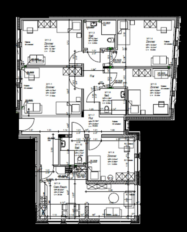 Das Angebotene WG Zimmer im Studentenwohnheim befindet sich in einer 5er Männer WG. Die WG verfügt über 3 Bäder und einer Gemeinschafsküche.